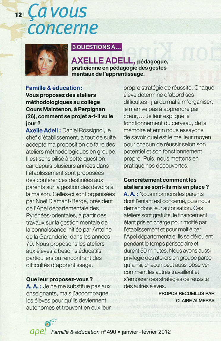 Voir aussi l'article paru dans le Magazine "Famille et Education".